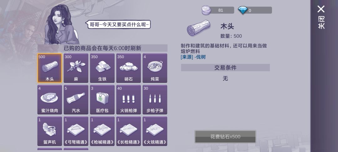 氪佬专属商人,你可以在这里买到大量资源,但钻石只能靠氪金获得,量力而为即可,白嫖玩家直接略过