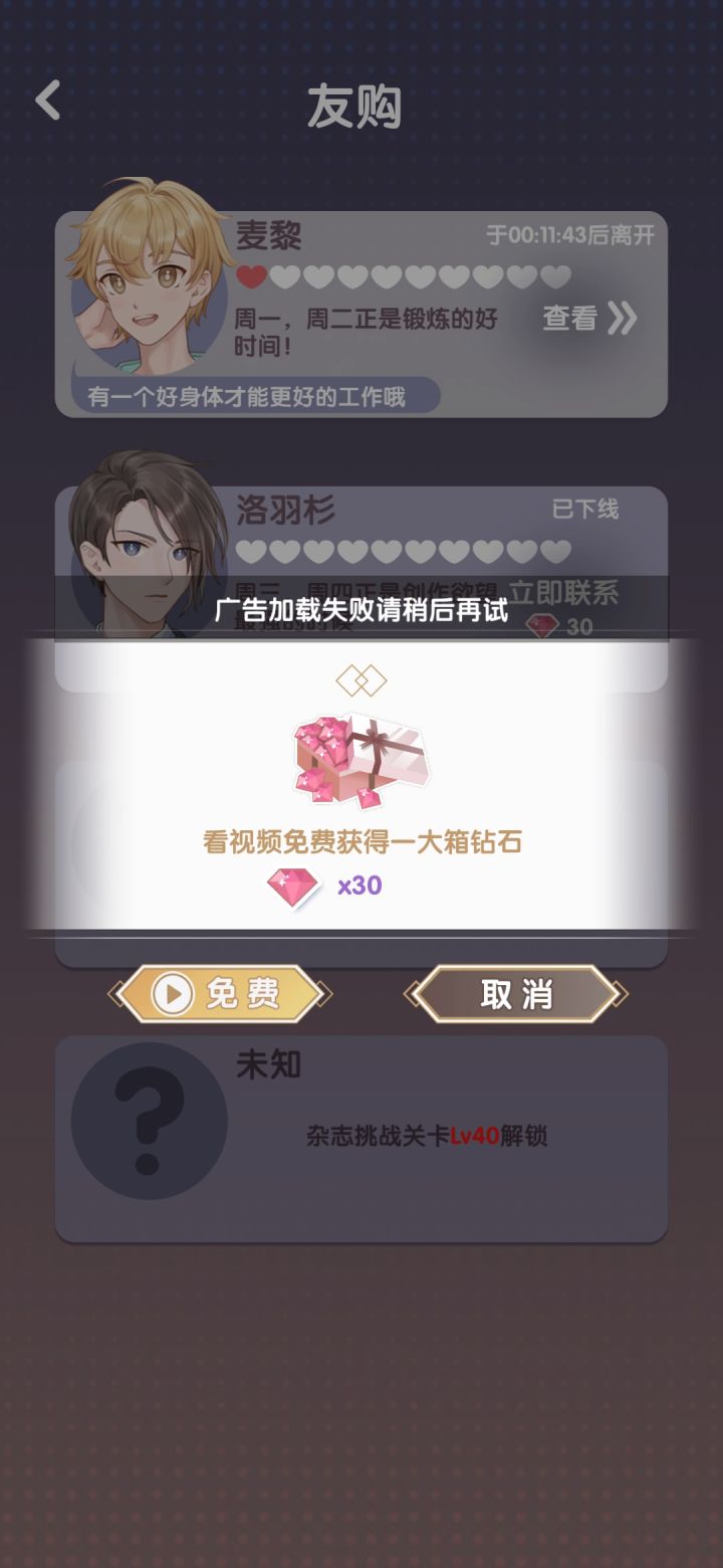 我联系这个玩意干嘛,我不理解,浪费我钻石,还浪费好几次,好鸡肋,广告都看不起怎么完成这个任务还不能跳过,真的很无语
