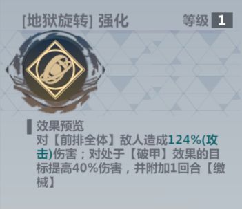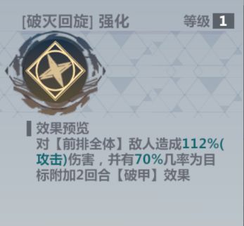 被动效果是通过抵御来为自身增伤,输出主要通过【破灭回旋】对敌方前排进行破甲,然后通过技能牌【地狱摇篮】对已破甲的敌方前排造成更高伤害。