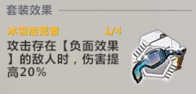 芯片4件套推荐2-负面套:[冰雪拾荒者],该4件套效果攻击存在负面效果的敌人时提供攻击力,搭配上阿黛尔造成的破甲效果非常好用