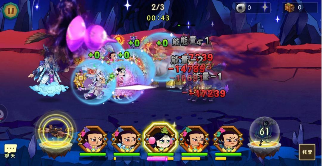 第一关:開局直接放幡,4只魔狼对前排压力比较大,幡结束4娃技能然后放02,法宝结束1技能控前排紧跟7技能,5和蝴蝶注意补血回能,剩1只魔狼时平打留技能和拖法宝时间进入第二关。