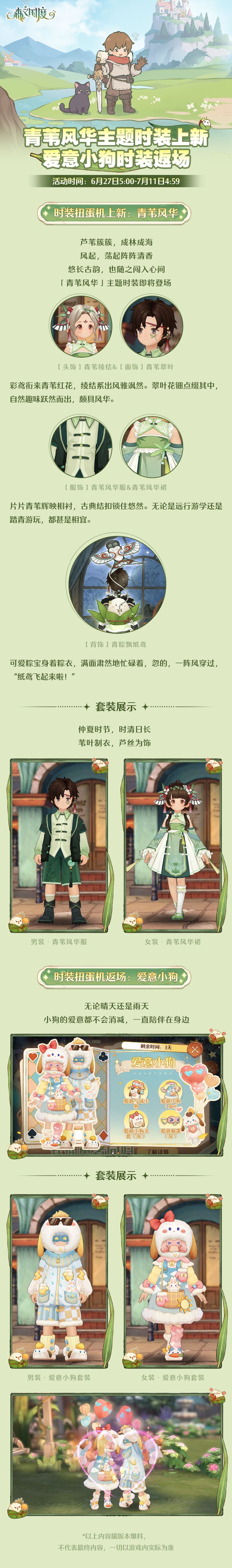 青苇风华主题时装上新!爱意小狗时装返场