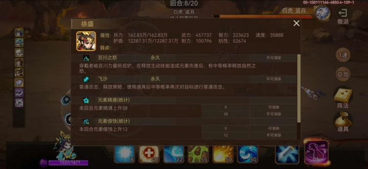 在某贴看到玩家(飞飞飞)提到用凌统叠盾的纯粹伤害打白虎想法,就去用凌统和徐盛分别测试了打乌龟和白虎。结论是;