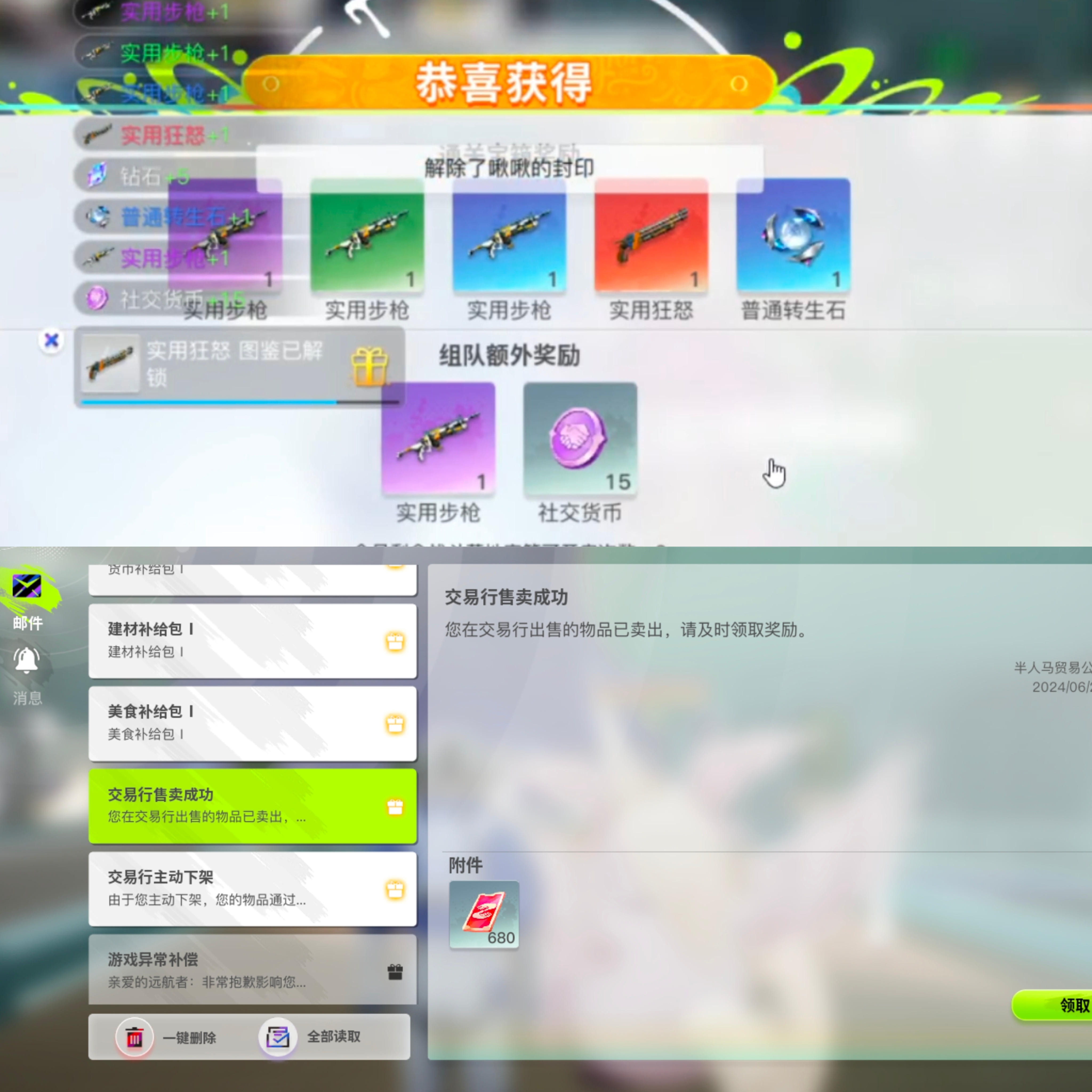 1.武器装备够用就行了,紫色品质的就行了,如果刷到红色品质的了可以卖掉,因为前期的武器都是过度的,攒点交易币可以后期买更好的装备。