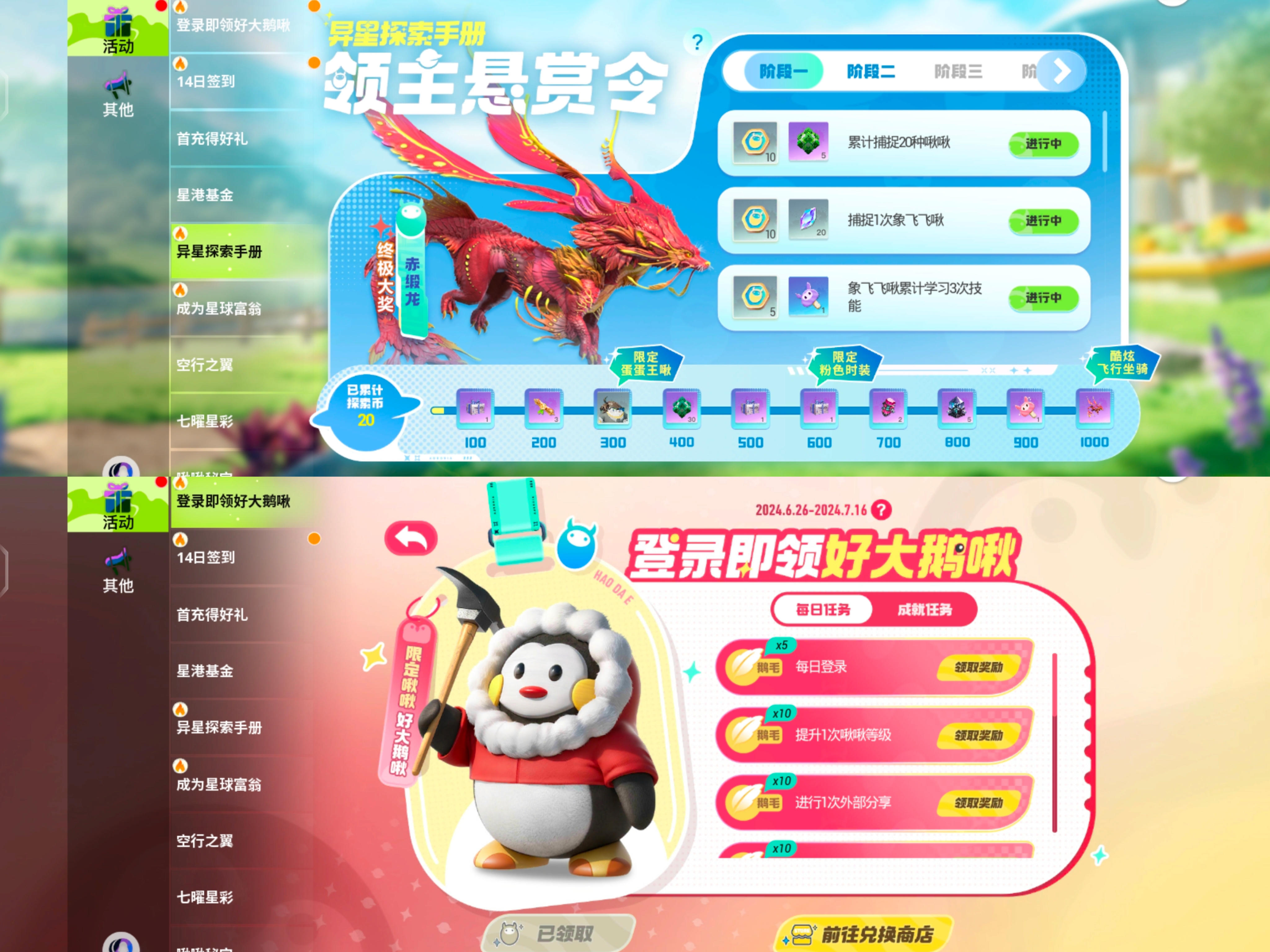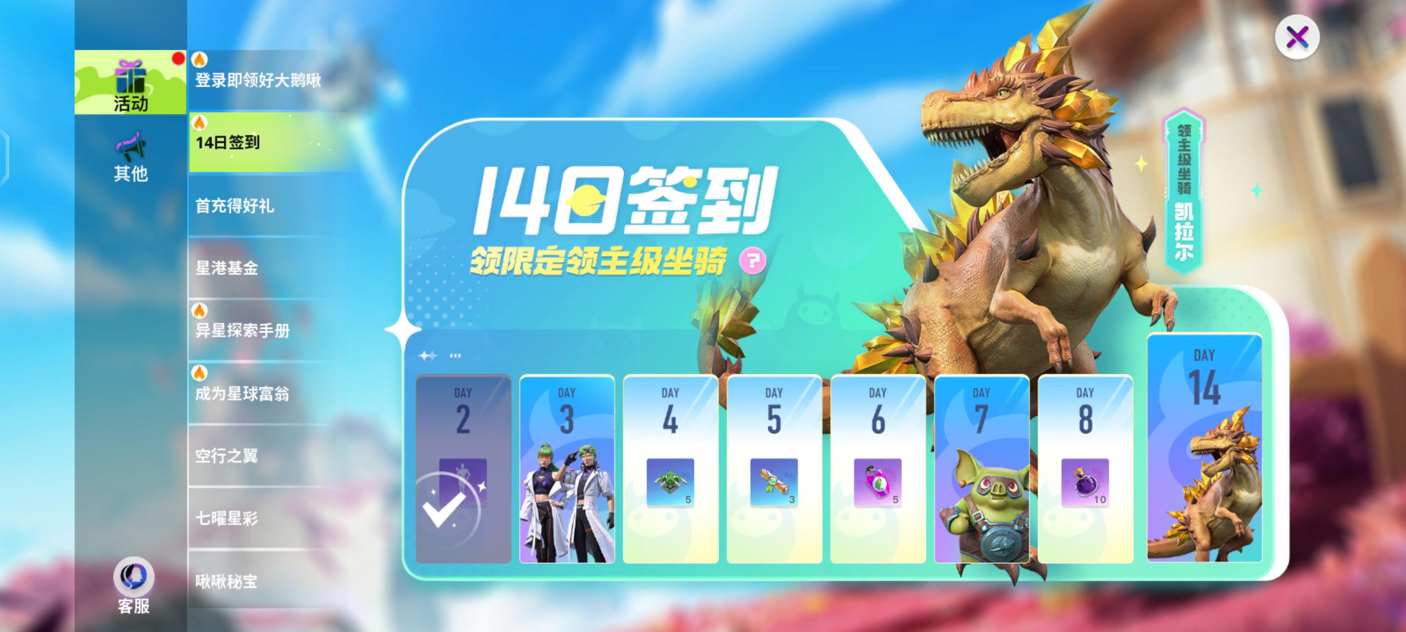 这些免费的活动也可以肝的,都是不花钱的,可以领很多物资,还有飞行坐骑。