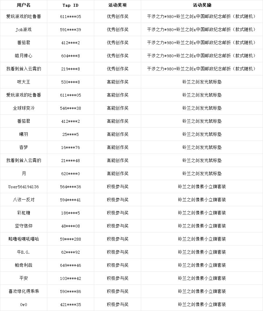 2. TOP6-10获得【铃兰之剑x中国邮政纪念邮折(款式随机)】一份