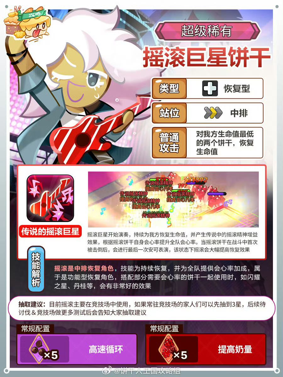 摇滚饼干测评,目前体感是竞技场强势饼干,技能被动的35会心搭配多数饼干能打出爆炸伤害。