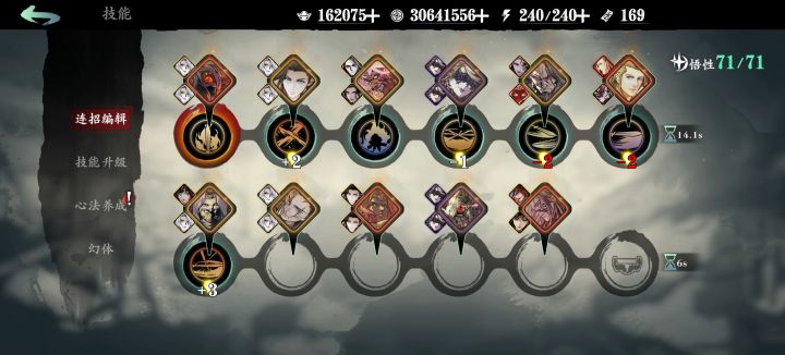潜能套的刀光,多触发一次刀光可以多打80e,所以选择带7个技能,保证最后暗龙剑带出刀光。