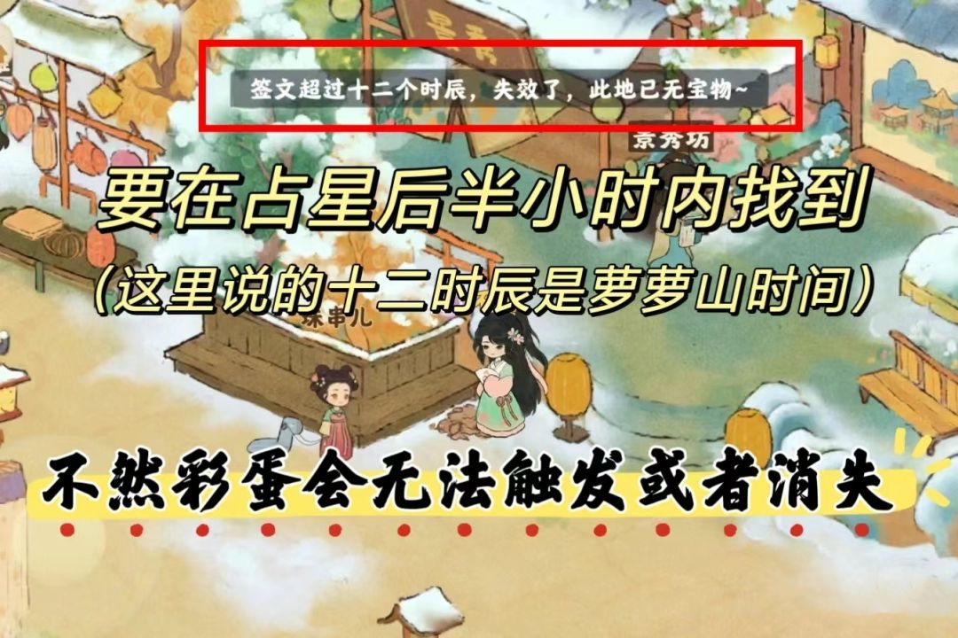 注意事项:占星得到迷运后半小时内去找到,萝萝山也不要选择过夜,超过将无法触发彩蛋,或者彩蛋会消失!