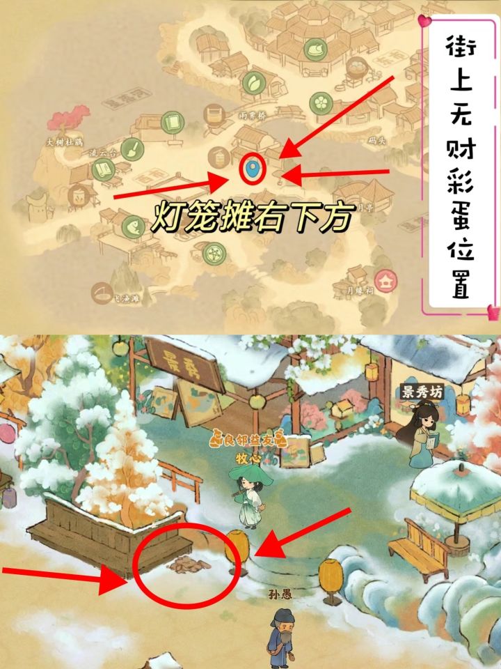 ①街上无财位置:灯笼铺右下方台阶边上(p2)