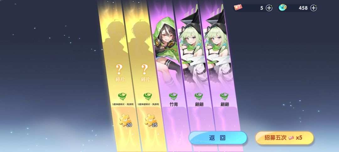 第六抽卡:抽卡里面能有三个心愿格子,两珍一绝,目前第三天零氪,资源全部拿来抽卡,抽了差不多260抽左右,没有出过一次心愿,而且没有保底,最魔幻的是,这游戏没有基础四星,只有2星3星5星,2星没用,三星升四星升五星,抽卡能抽到三星升到的五星角色,我前面也说了,星级角色之间强度差距太大,还有更魔幻的是序列召唤里面抽出的金光大概率是碎片,碎片?我抽的时候看见是金光还心动了一下,看见是碎片悬着的心终于死了