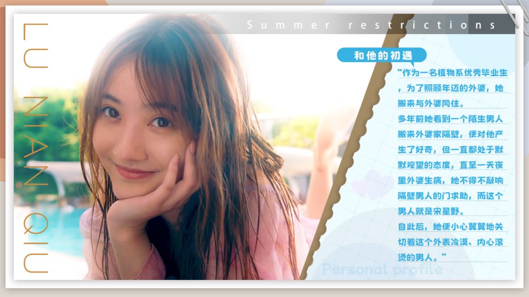 感谢各位侦探一直以来的支持,我们特别企划了【夏日限定】特辑,为大家开启更多女性角色的小小番外故事,欢迎各位侦探在本帖下方留言,说出你对陆念秋的第一印象,我们将从留言的侦探中,随机抽取10名送上夏日限定专属福利哦!