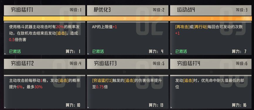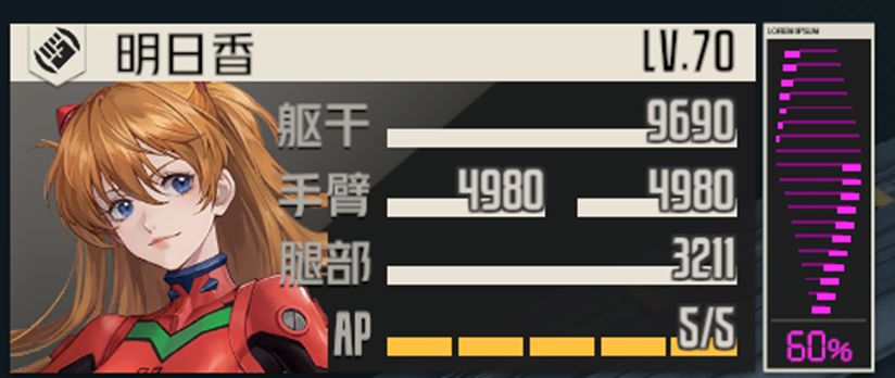 从异世界穿越而来的Eva联动机师,与其他机师一样,获得了仿生电脑,但有着不尽相同的仿生电脑能力。这一差异主要体现在y1和y2区的部分等级能力上。如明日香为格斗家职业,理论上y1区应当是格斗家特色能力,也就是一整套的追击,然而实际上却不是如此,除了常规的ap+1以及再动次数提升依旧保留,其余都为明日香专属的拔萃能力取代,这一点实际上是对于明日香使用非格斗武器的利好,毕竟原本的追击只有格斗武器才能生效。