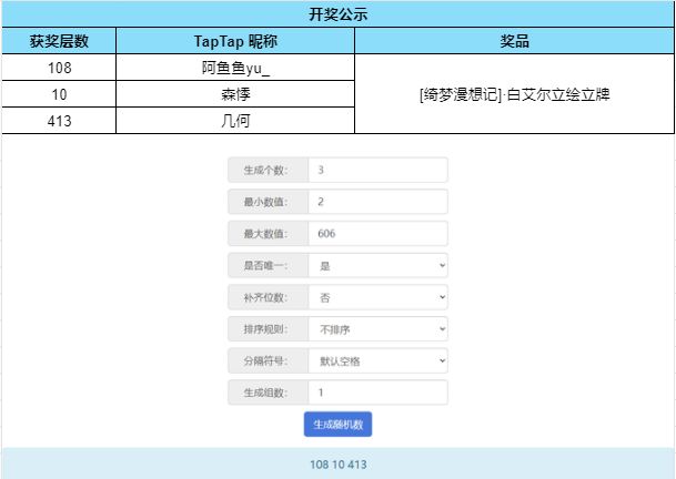 根据开奖结果显示,恭喜以下幸运的玩家们获得奖品: