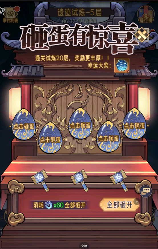 e.奇遇的细节,砸金蛋一开始的三次机会砸完可以接着用灵玉购买两次全部砸完,产出的资源绝对不亏;