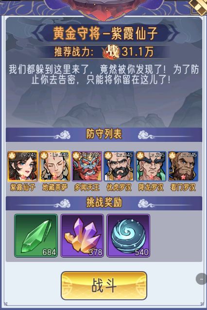b.挑战的顺序,出战神将战力由低到高,攻打先从ssr小怪开始打;