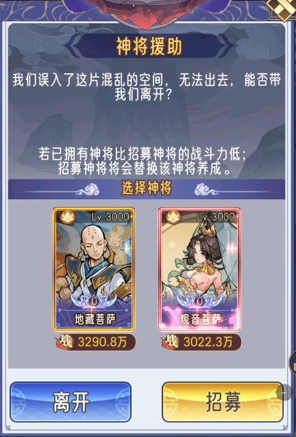 1.神将援助:根据自己的阵容选援助的神将,可根据阵营以及神将的职业来进行选择;