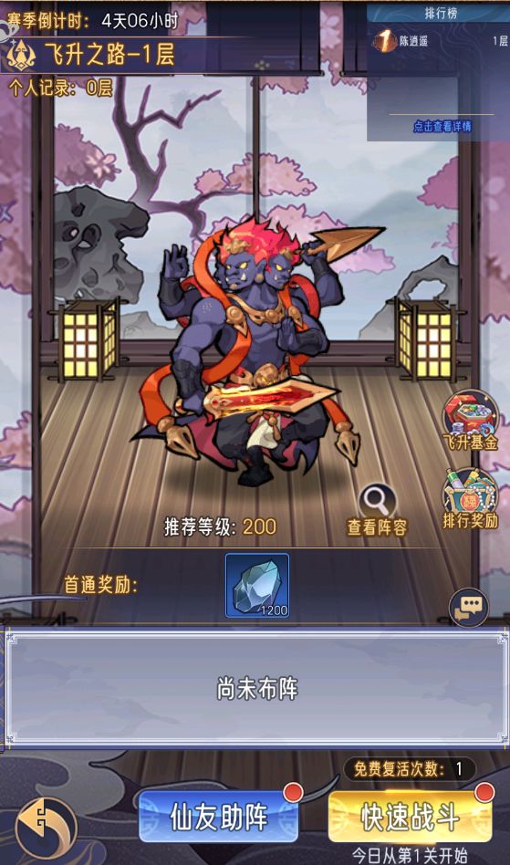 飞升之路是一个队伍爬塔的模式,仙友还可以招募好友的神将助阵,但不能超过自身战力的120%,仙友也可以将自己的神将助阵出去获取友谊值。
