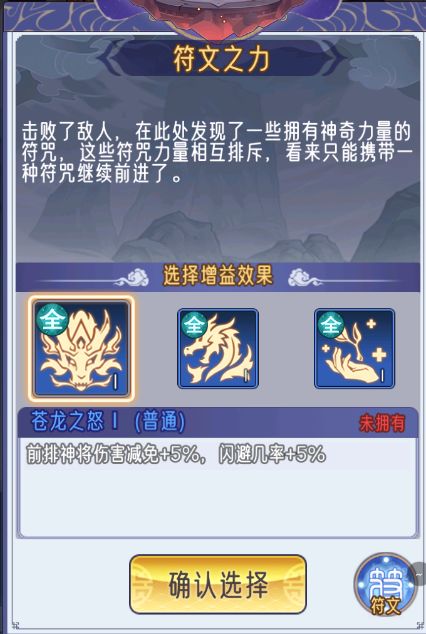 2.符文的选择:符文有两种,一种是针对所有神将,另一种是针对所属阵营,玩家可根据自己所选的阵营来进行选择;