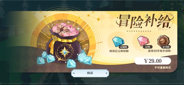 冒险补给内容:获得一次300蓝钻,同时每天登录可领取:粉钻35,古旧的硬币100