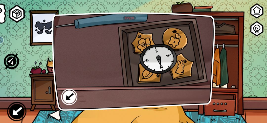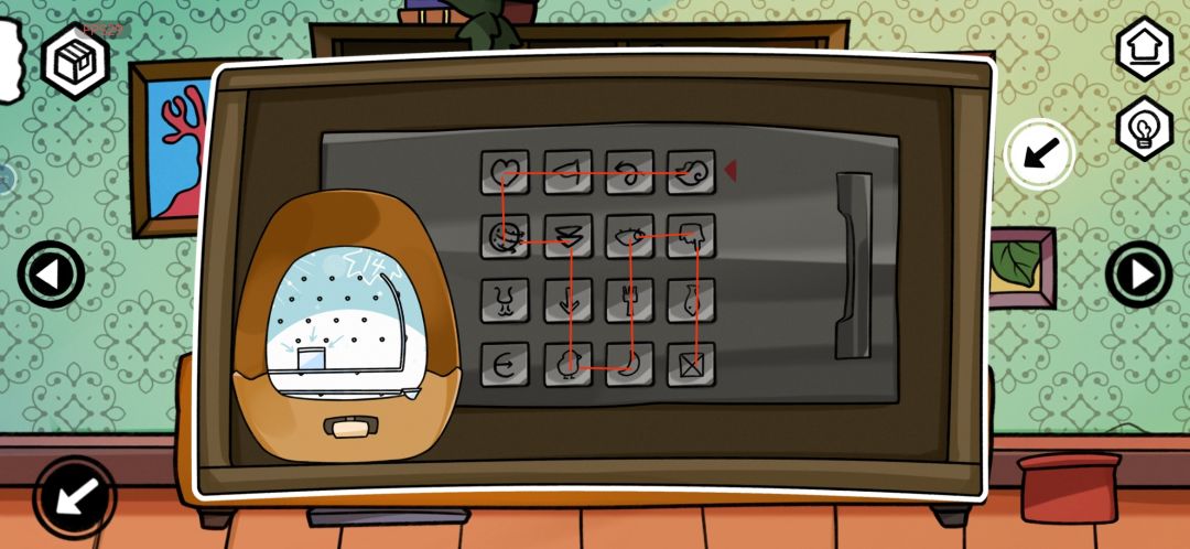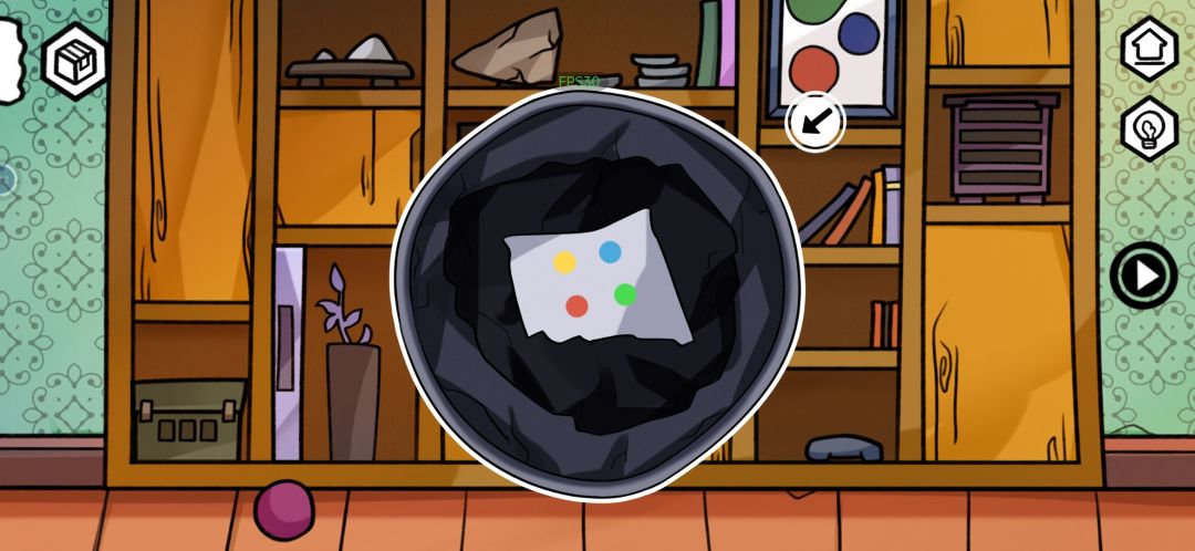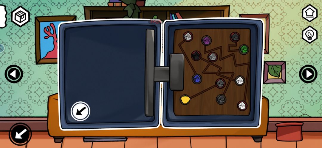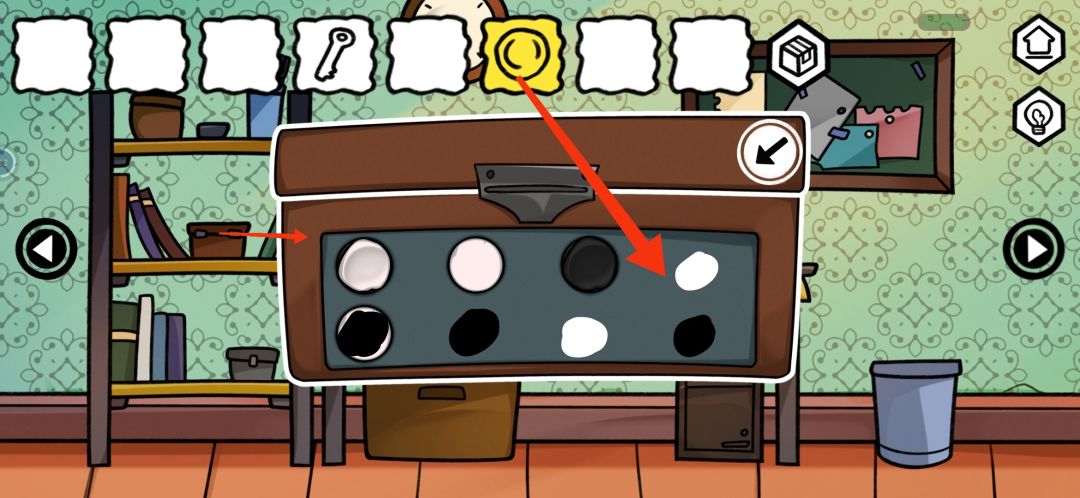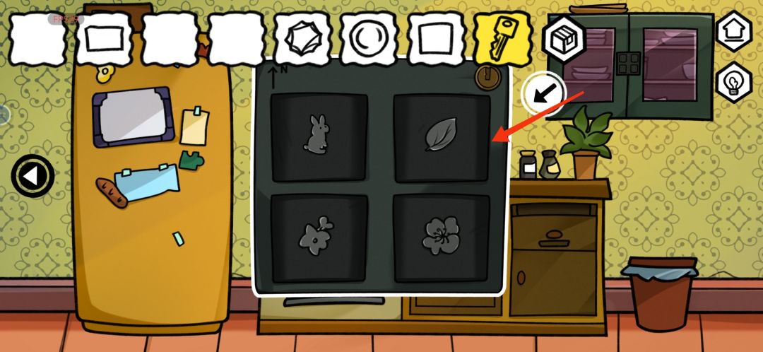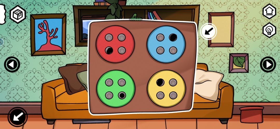 植物植物下的线索是开沙发右侧的盒子,按纸条上颜色的位置打开盒子