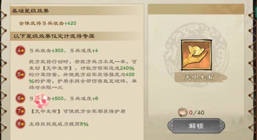 行动时,如果兵力不足1半,对敌人前军造成240%的倍率,并且给一个400%的护盾,7星给全体护盾,但是我们说了,金色计策不用考虑7星,而且,血量越低,伤害是会折损的50%的血量时,伤害也会降低50%,就代表人家输出都打满了,你这个技能才放,伤害不够高,护盾也不够高,还只是纯后军的,应用面太窄了,完全是为了保证远2兵种阶段自己能活下来的一个计策,而且护盾机制S4还会被王越克制,如果不是生存压力实在太大,不考虑,T3