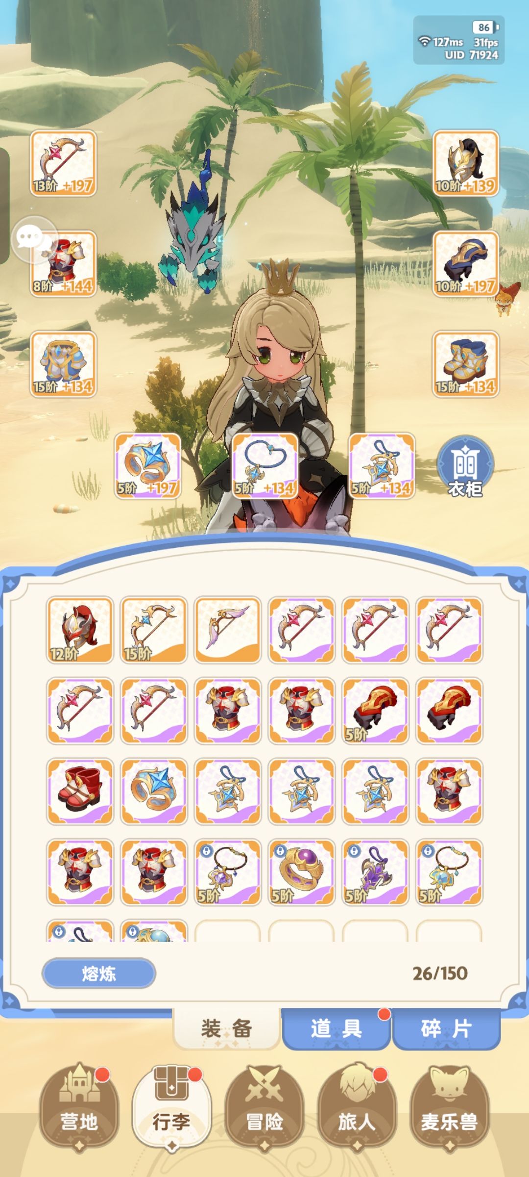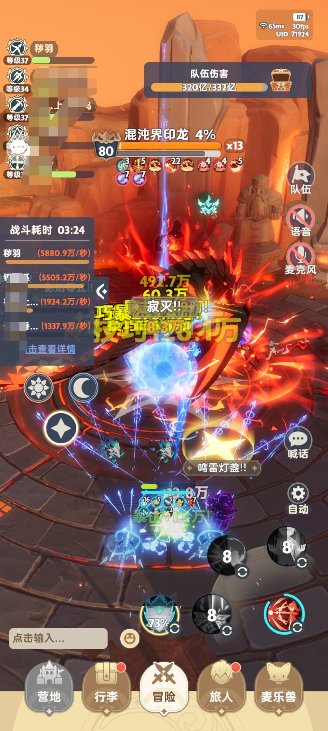 今天最新的面板,打龙8800,史莱姆3.3亿。伤害越来越玄学了,莫名其妙自己就高了,属性也要调控好,暴击和技巧不要堆太高,收益会降低的,如果觉得高了就去换一个爆伤