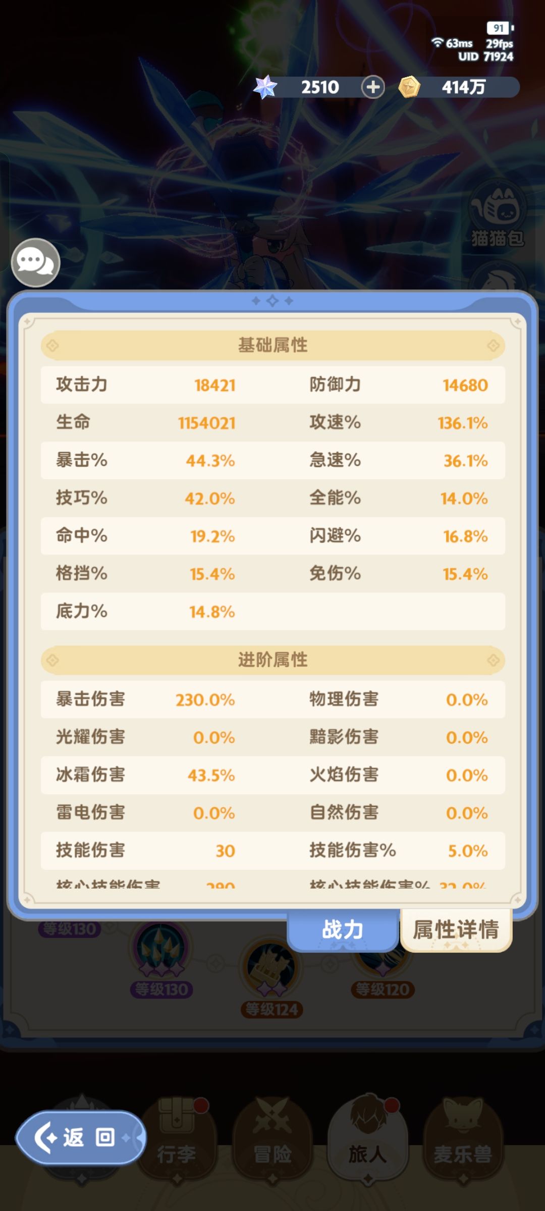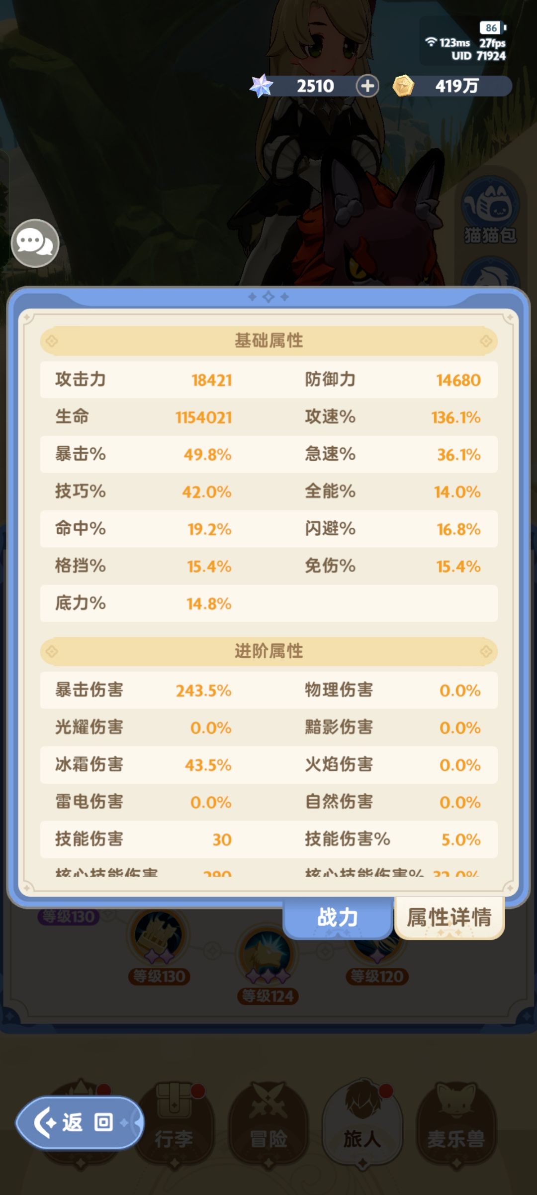 面板的分布,暴击技巧就按暴击比技巧多10%去堆,有硬币猫的话命中常驻额外2.5自己压一下面板,如果三个1号位都是30爆伤,2/3天赋用暴击技巧不要伤害最高