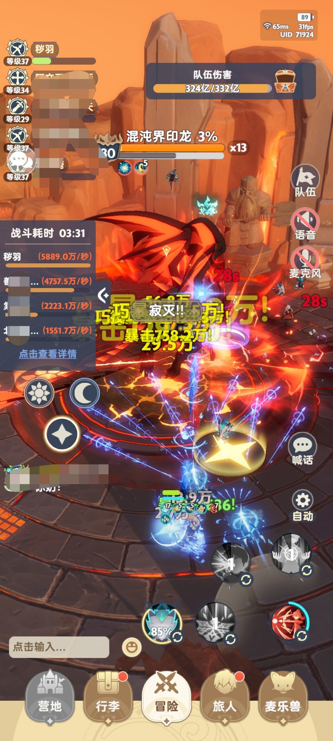 打龙的伤害目前就是58左右,如果能打到5分钟的话伤害应该会更高一些,史莱姆最近挂机200摆烂没去打,第1天是1.2亿今天应该可以1.5亿吧