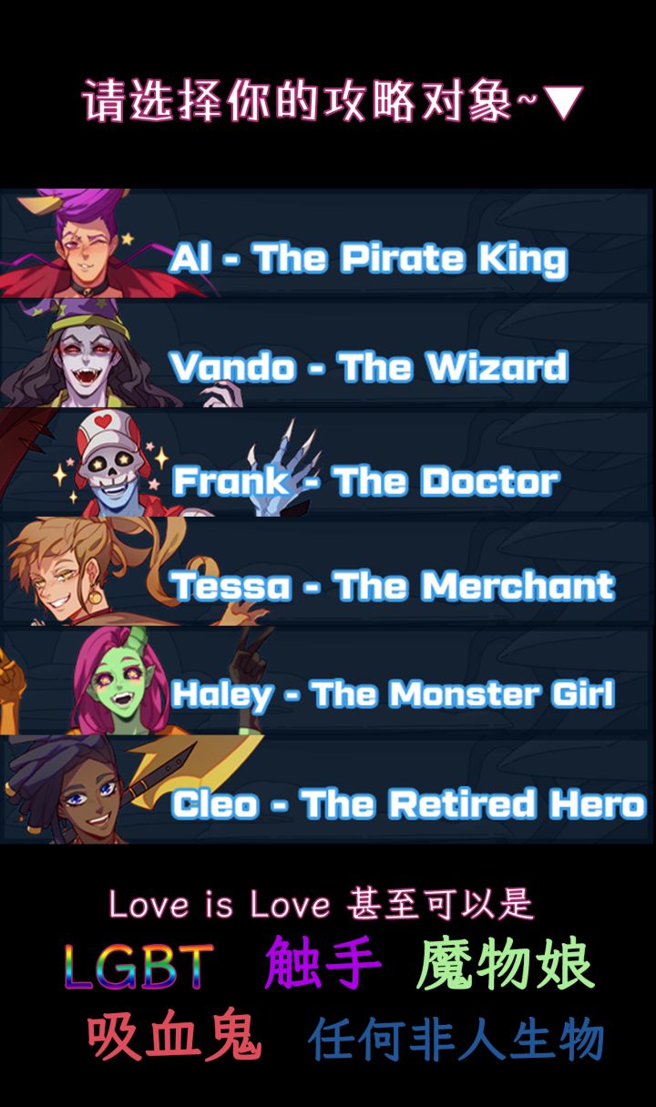游戏里全是非人类帅哥美女,还有很多漂亮的Npc可以约会,哪怕不是主角的立绘都很精致。XP类型可就太多了!哥特帅男、俊美天使和可爱的魔物娘们等待你去挖掘和攻略。嘿嘿,触手,嘿嘿(流口水)。