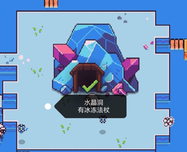 水晶洞上边岛(冰冻法杖,有几率冻住敌人,下面的火烧的箱子,可以拿来灭它拿箱子)