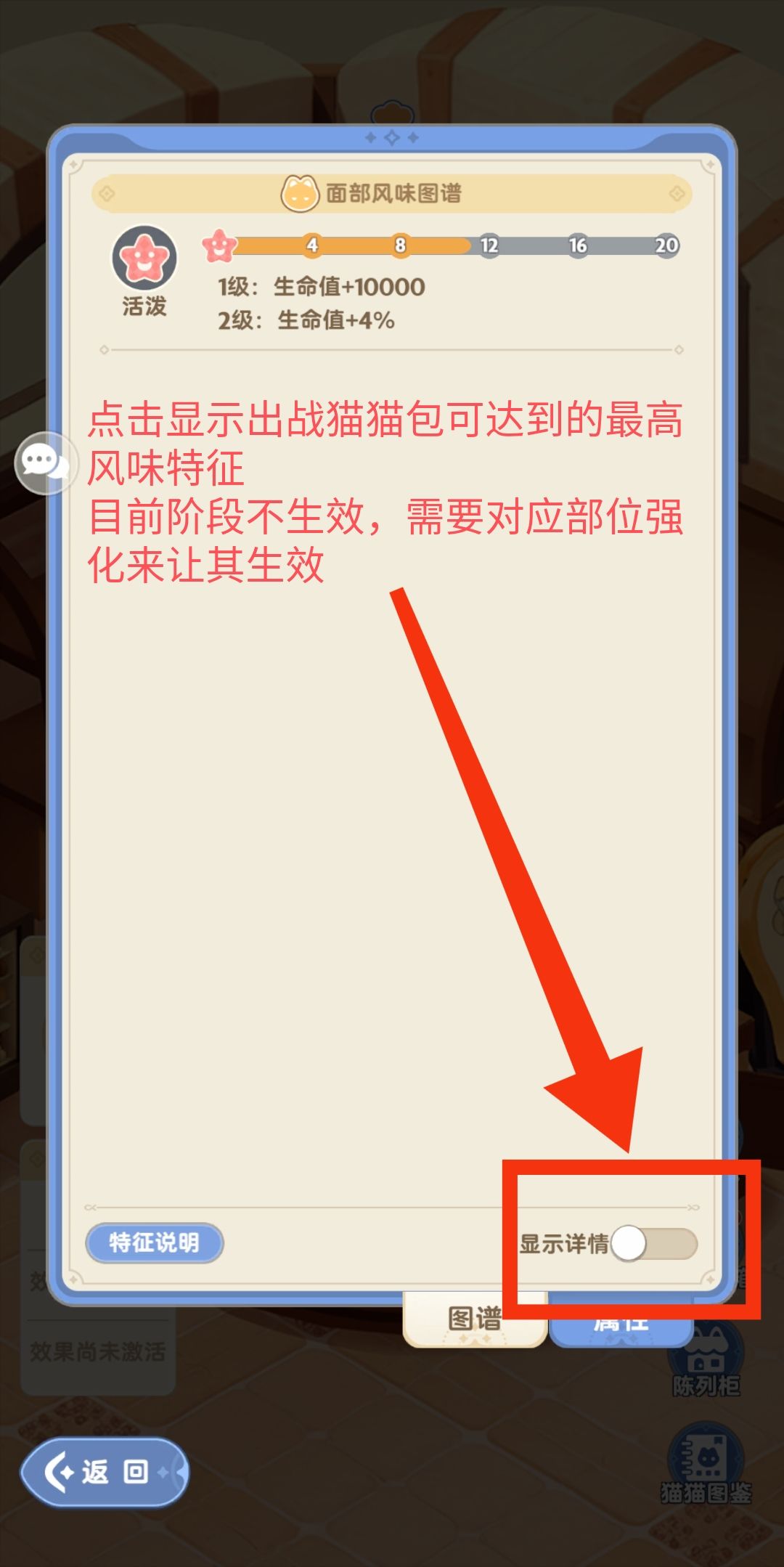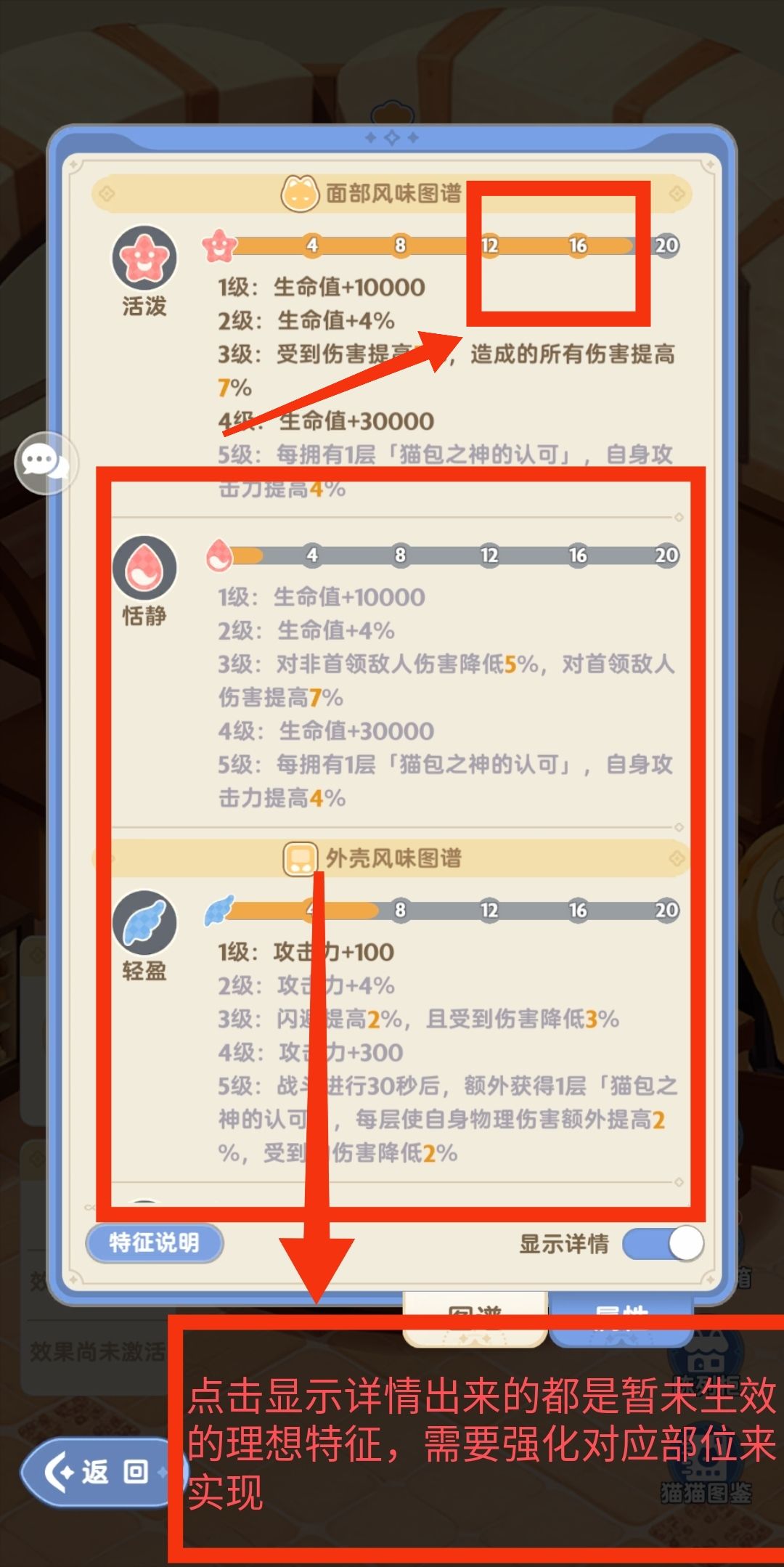 即是出战猫猫包理论能达到的活泼特征是18个,还有2个恬静特征,未来可生效4级活泼特征,1级恬静特征差2个。(查看显示详情页面)↓