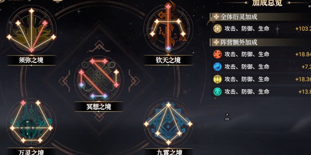 4. 灵境:简单来说就是开图鉴,不管上不上阵,有条件尽可能拉高到红五,尤其是自己主C所在的阵营,红五卡越多加成越高。