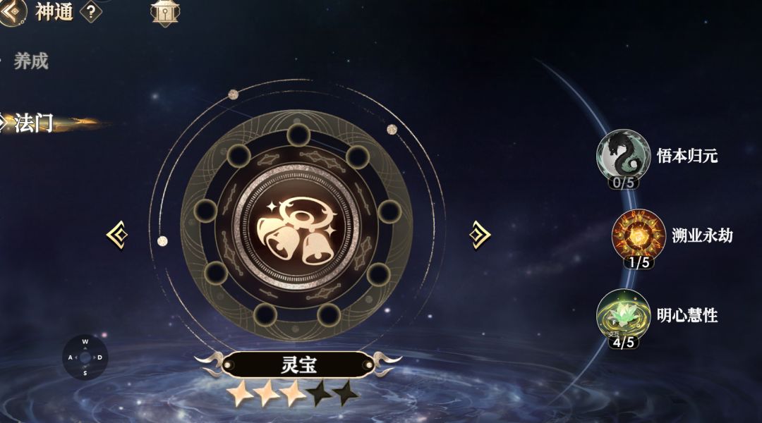 8. 神通:神通法门目前有三种,先把灵宝法门升三星就行,最优先点明心其余一点。再根据自己主队阵容的选择攻敌或弘毅。极限输出先拉攻敌到五星,防守反击先拉弘毅到五星。