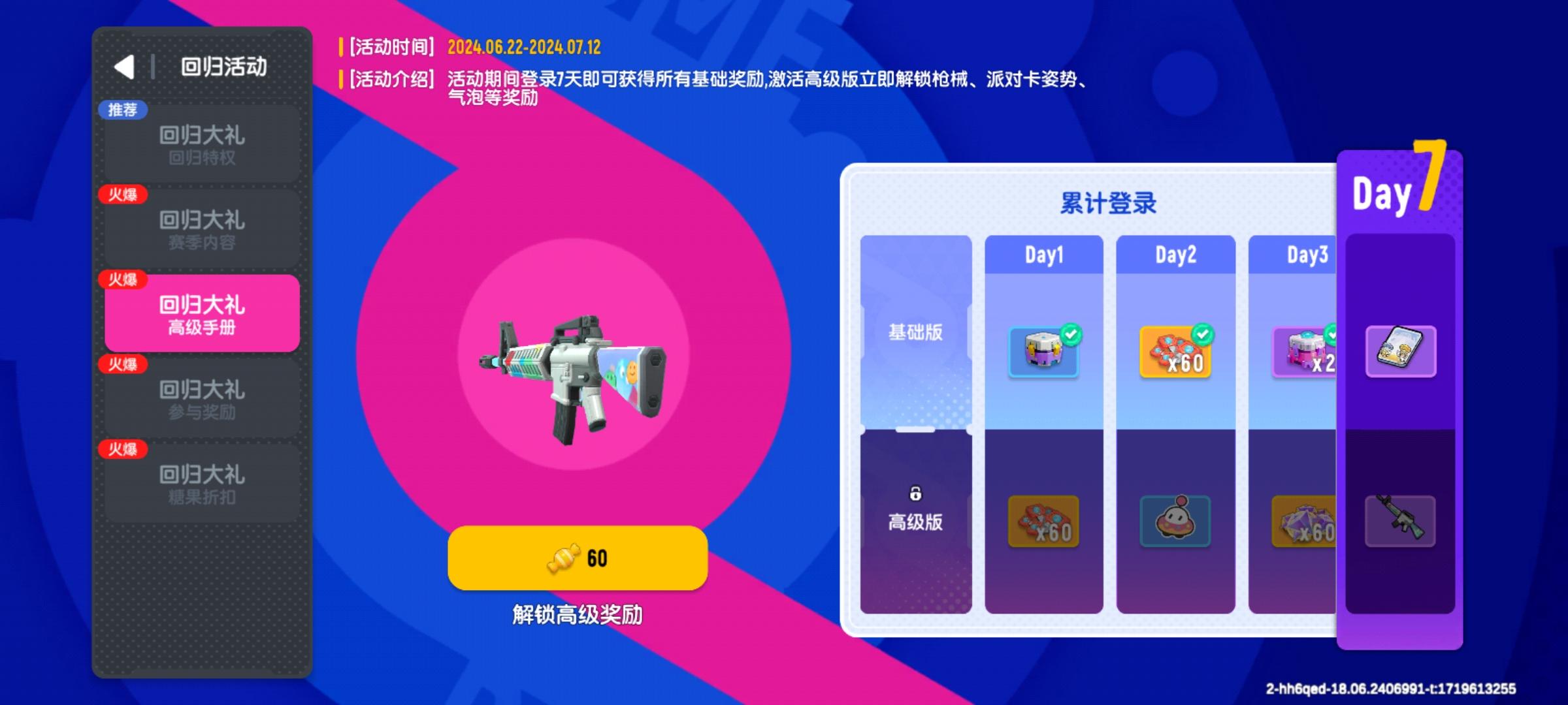 首先,完成一局比赛,可以任意获得一个任意的彩虹补给箱里面的史诗动作,个人感觉还是挺不错的。其次如果购买了回归手册,并且完成了7天的登录任务我们还可以获得彩虹补给箱里面随机的史诗皮肤,比如枪械、派对卡姿势、气泡等奖励。