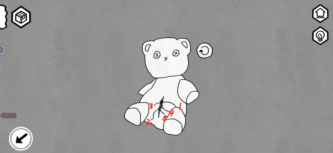 进入地窖后,找到没有带领巾的小熊按从长到短拔掉线头,得到相机储存卡