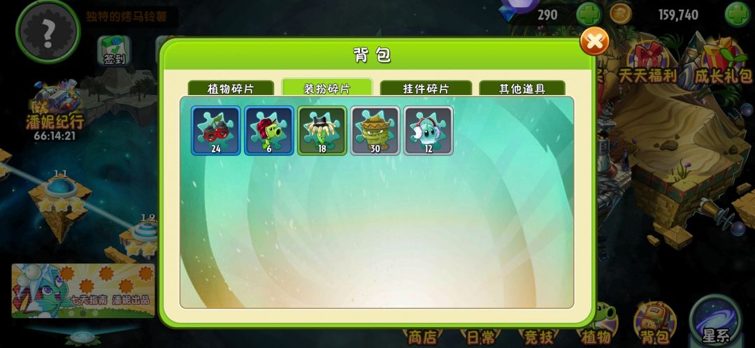 1-5关:噬碑藤装扮碎片,共30片,刚好合成装扮