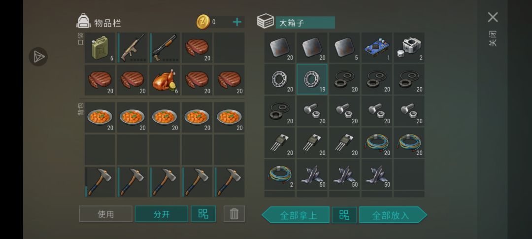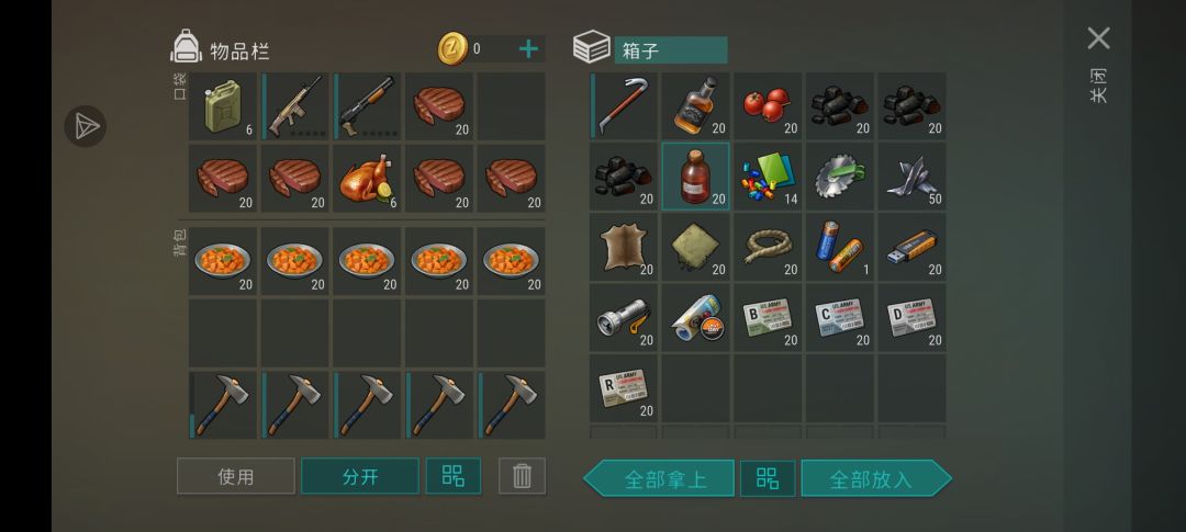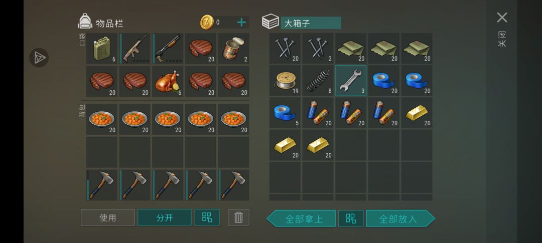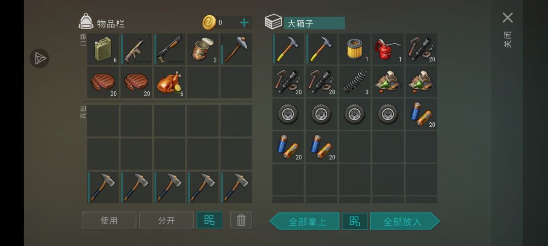 后面三个箱子,一箱子木板,木板左边一箱子石头,石头左边一箱子石砖,石砖左边的箱子就是空的。