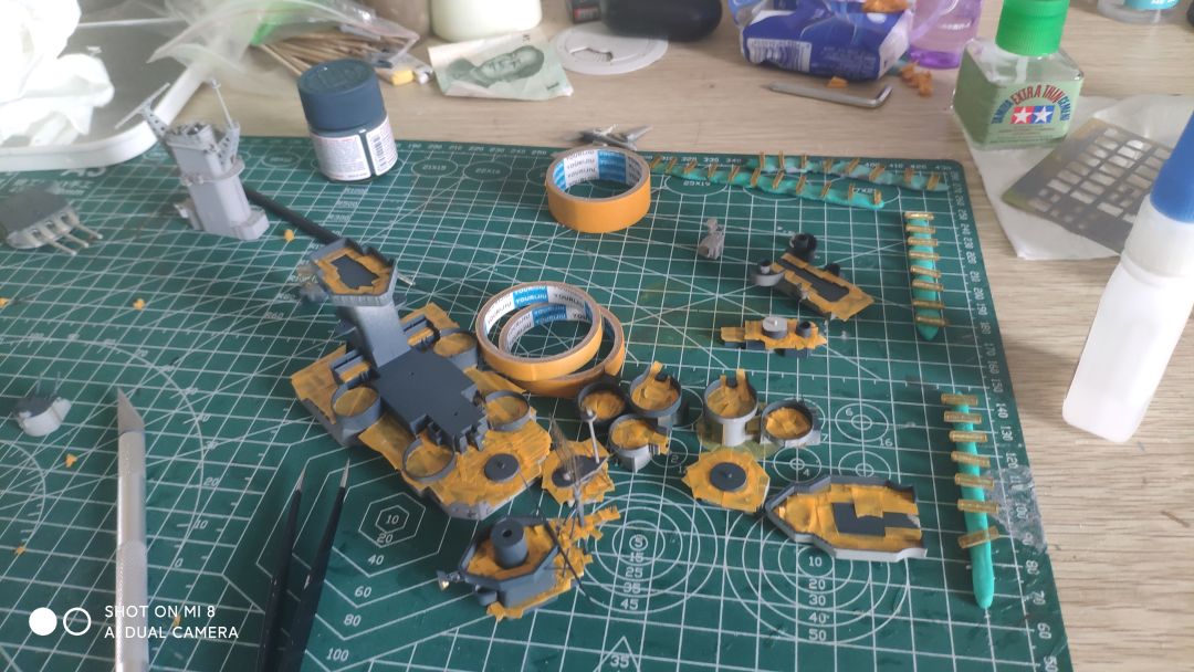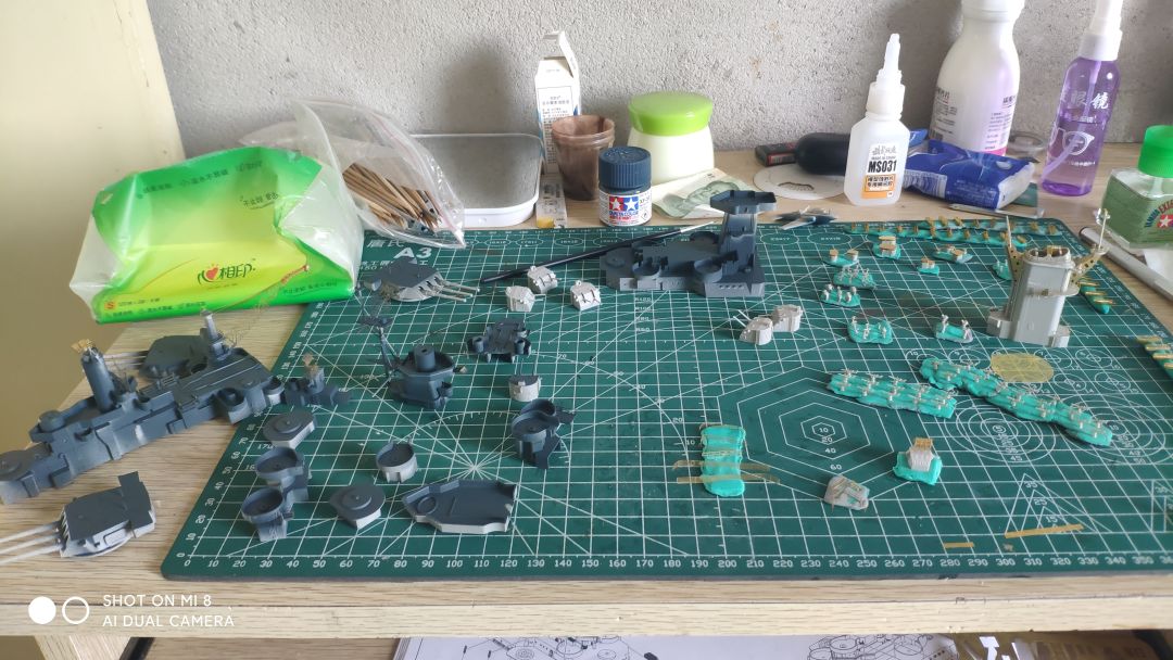 算是完工了,但也仅仅是做完了,拉线做旧什么的一个没有搞,不想动了,这套做着太难受了,蚀刻片硬的要死,和板件的匹配度也有问题,细节我只能说是有,但不多,还有这个鬼涂装太要命了,遮盖地狱,能从早上8点一直干到晚上8点(最后效果还可以,这样了我也不想动了,威斯康星该动了,没有做多少,但只能说这东西细节太牛逼了,哪哪都是细节,后面做到一定进度再单独发个贴说一说,看两个月能不能整完吧(