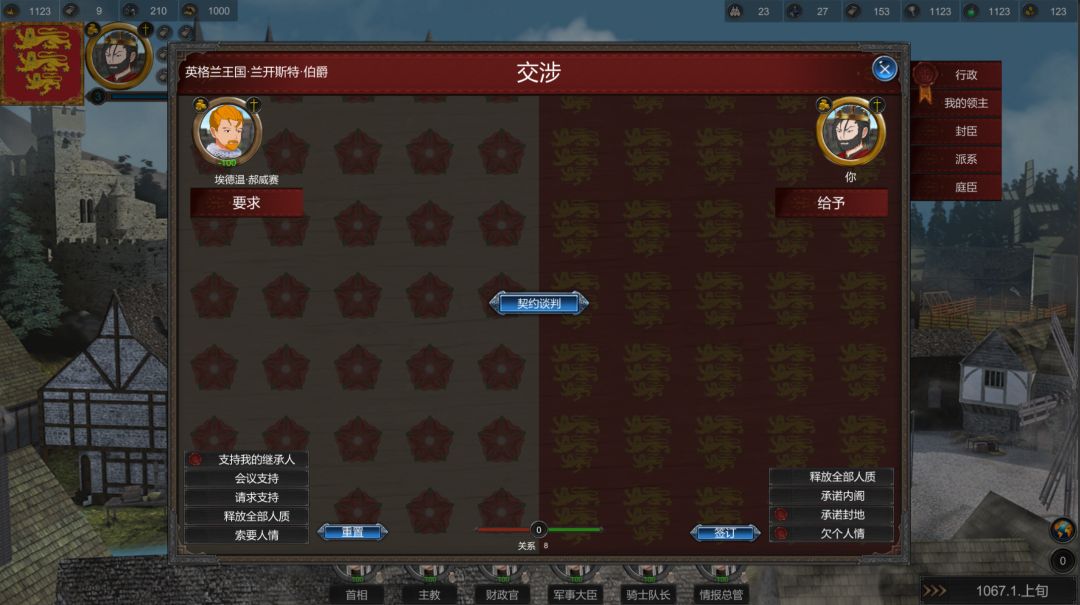 为了将继承战争概率降低,我决定找领主来支持我的决定。我决定承诺他一块封地,欠他个人情,希望他可以改为支持的钟意的继承人。