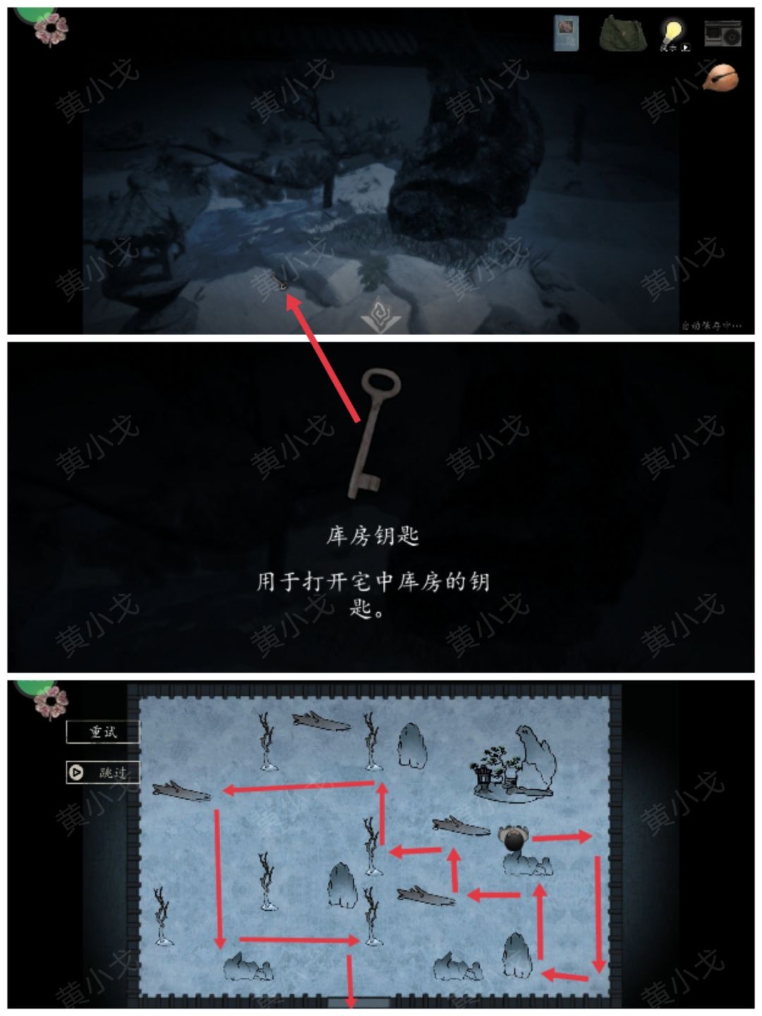 9.在假山上获得【库房钥匙】;完成小游戏,返回庭院