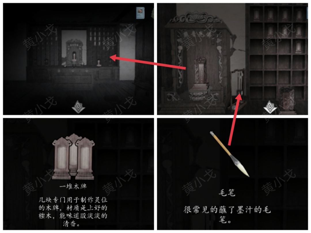 5.点击右边的灵位架,获得【一堆木牌】和【毛笔】
