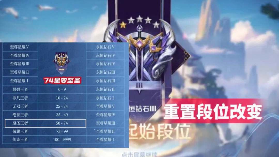 在两分钟的时候,中路玩家和打野玩家乃至于辅助玩家都需要注意,对抗路的传传送阵处会刷新一只河道精灵,这只河道精灵击杀之后也会给全队额外提供150金币,并且击杀之后会立马刷新传送阵。所以在两分钟的时候,对抗路的传送阵会成为中立资源争夺点,中路打野乃至于辅助,有机会的情况下一定要帮助对抗路抢夺这个野怪。2、段位系统改变新赛季更新之后,段位系统也得到了一些改动,相比较上个赛季,这个赛季上荣耀王者更难了。之前荣耀王者的门槛一直都是50星,但是在这个赛季,需要达到75星,才能达到荣耀王者。
