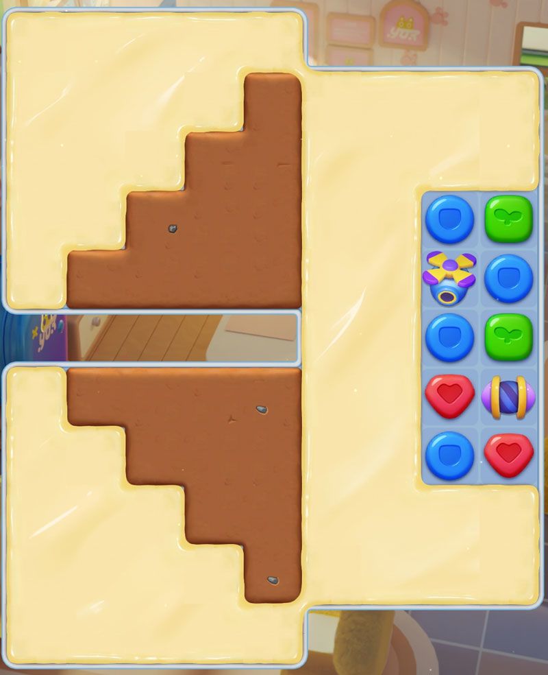 689关的奶油下方藏着大量的花盆,需要进行尽快的大范围清除,开局不要省道具,若有“超级智脑+超级智脑”“螺旋桨+火箭”会节省很多步数。奶油消除之后可以优先将泥土清除,扩大可用棋盘并让有效消除范围触及花盆。至于大范围花盆的应对,还是以炸弹、火箭等大范围消除的道具为主,此处不再赘述。