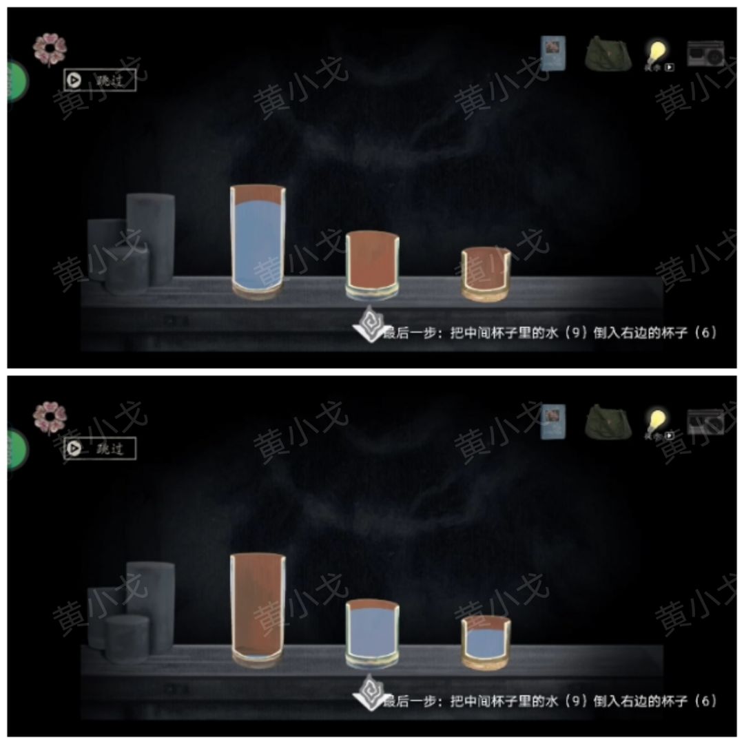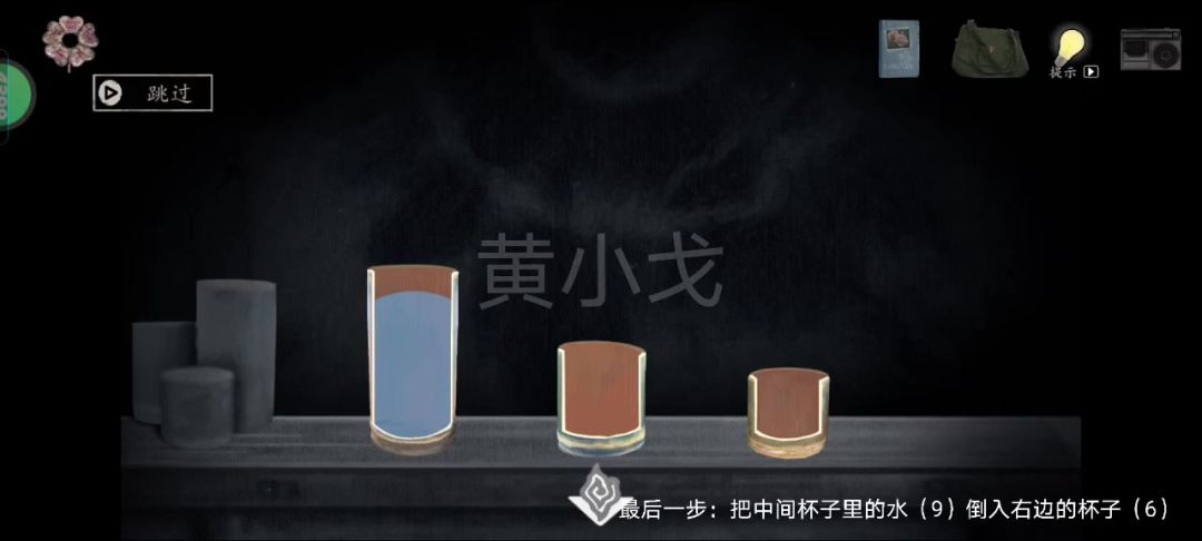 21.根据《段氏扎染》上的线索(需8升清水),完成小游戏(液体一共16升、杯子容量:中间-9、右-7)