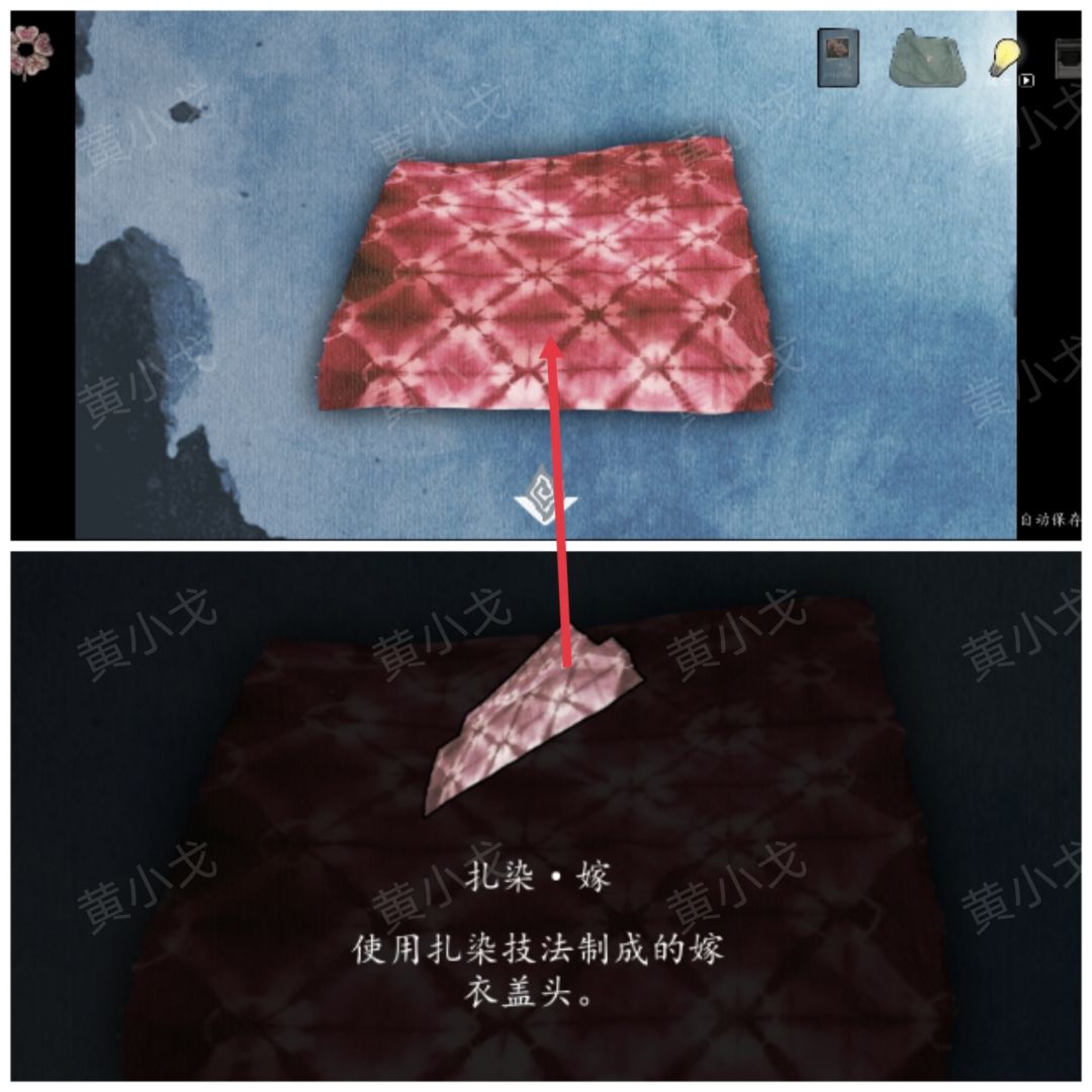 20.(染制区)点击桌子,触发剧情,获得《段氏扎染》;查看《段氏扎染》内容