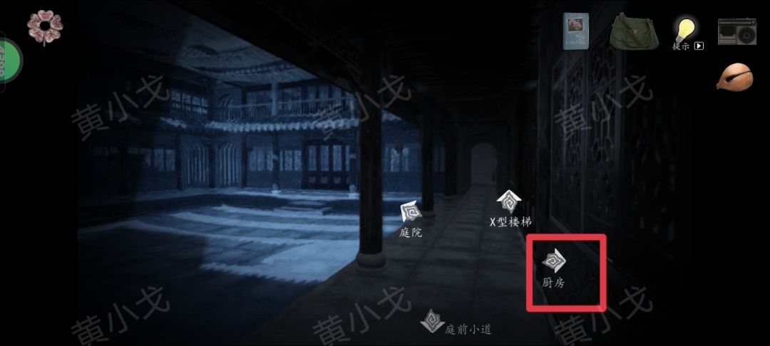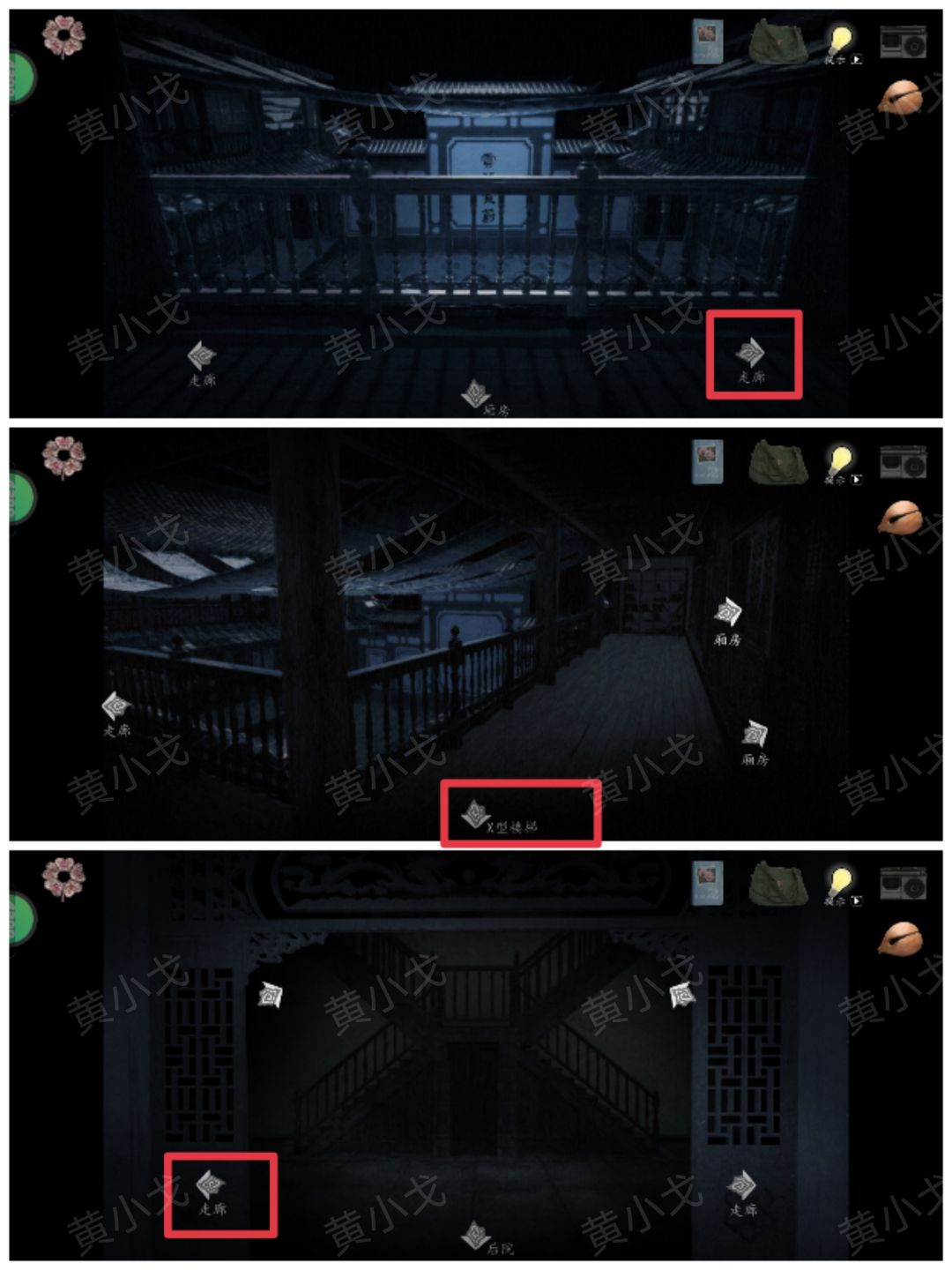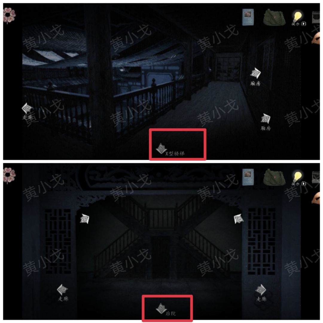 6.(厨房)前往厨房:右侧走廊→X型楼梯→左侧走廊