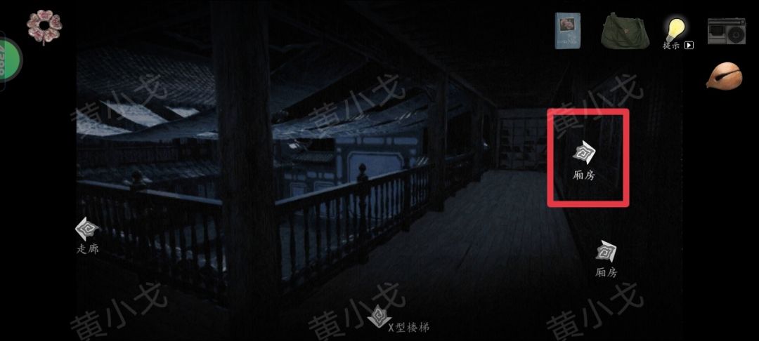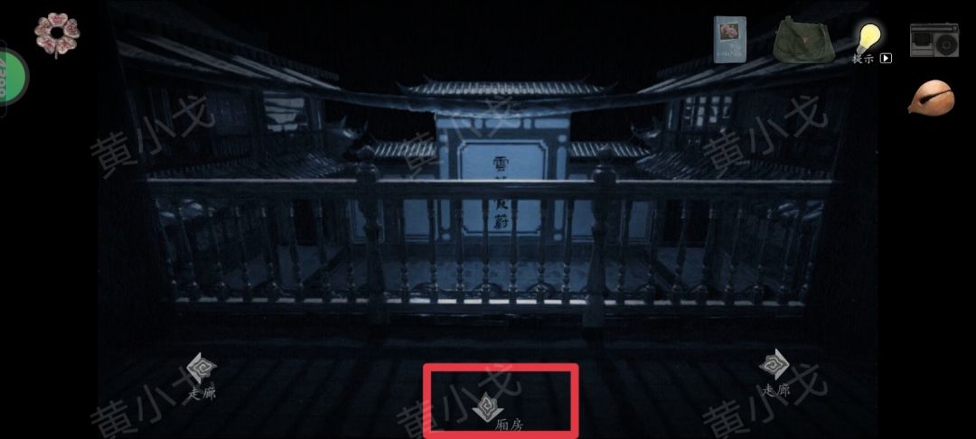 1.(二楼正中走廊)用【厢房钥匙3】打开厢房的门,进入段国强房间