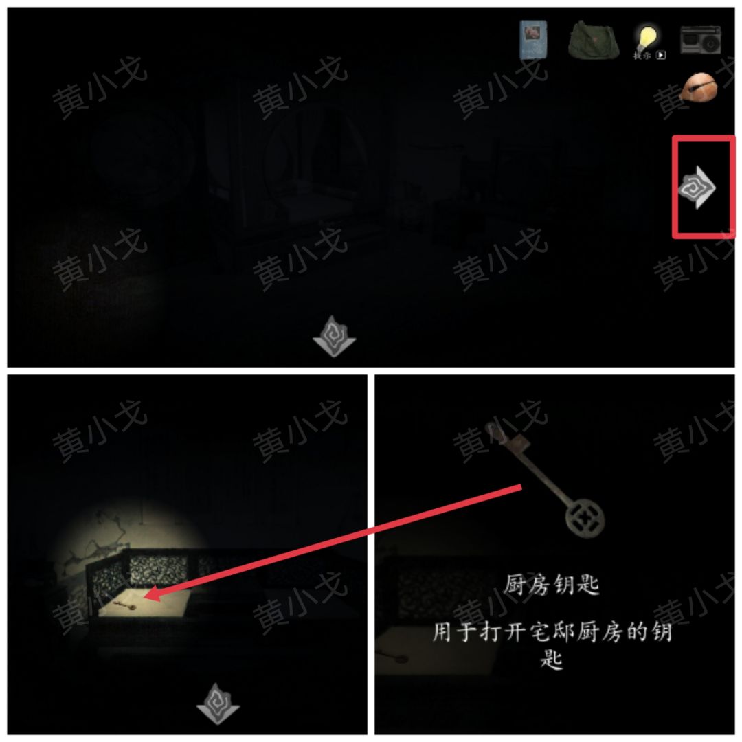 4.点击右侧按钮,在塌上获得【厨房钥匙】