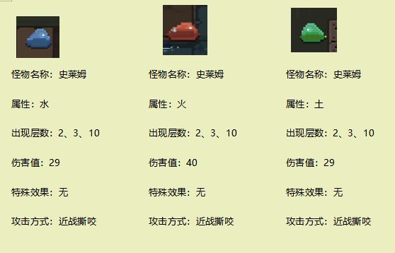 玩了这么久元素地牢之后发现我打小怪的时候居然看不到他的数值?有的时候被打一下10滴血有的时候被打一下38?Exm? 所以阿玥冒着生命危险亲测了一层所有的怪物,做了一个小的怪物整合和小伙伴们分享。